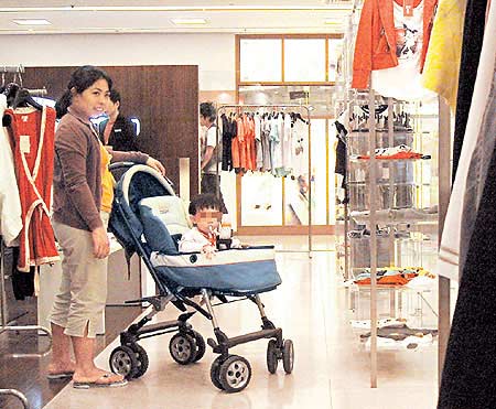 据台湾媒体报道,前晚陶子、李李仁带小荳荳逛微风广场,记者目击陶子在‘D-mop’服饰店挑衣服,菲佣照顾婴儿车里的小荳荳,倒是老爸李李仁不放心,边逛边过来查看小孩安危,还负责巡逻看有无记者跟拍,结果他衣服没买成,倒是陶子买了一堆新衣。