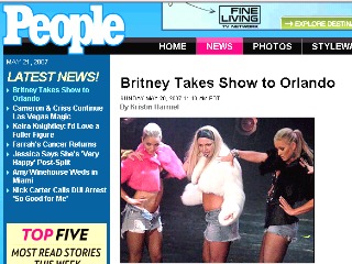 据报道,布兰妮特地戴上金色假发,穿着白色外套搭配粉红色比基尼、牛仔短裙与网袜出场,造型相当性感,一出场便演唱之前的作品“Baby One More Time”粉丝大力支持,卖力尖叫、喊着她的名字,让布兰妮相当开心。