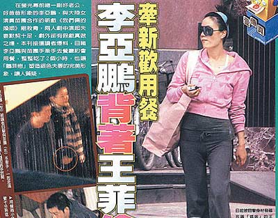 2003年8月,王菲生日当天,谢霆锋在香港陪伴梅艳芳引起王菲不快。王菲表示有“北京的朋友会庆祝”,后来证实这位北京朋友是李亚鹏。