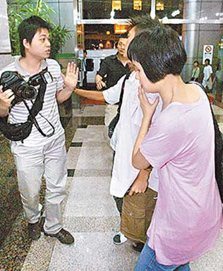 陈冠希昨衰事不断,白天抱猫过敏,傍晚赶通告又被某报摄影记者撞到,他等电梯时难掩怒气,手按着记者肩膀、怒目相视,工作人员见气氛剑拔弩张,趁他上节目时下来打圆场,跟该名记者道歉。