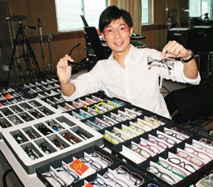 中新网6月20日电 据台湾联合报报道,品冠本周末将在北京举行出道12年的首场售票演唱会,别人演唱会忙着穿金戴银、打点衣服,他却端出厂商赞助的众多名贵眼镜,笑说他的百变全在眼镜上,但也承认去百货公司挑了束腹雕塑身材。