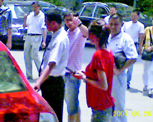 此时饭店门口的人群并不多,没有多少人认出田亮和叶一茜。不过当有人拍照时,警觉的叶一茜最先发现,在靠近车子时告诉了田亮。田亮则对着照相机镜头,用左手比了个“七”的手势,并同时用普通话警告道“不要拍!不要拍!”