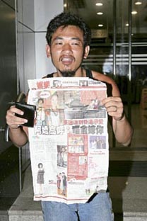 昨日狂迷007致电报社声言要在湾仔警署爆料,傍晚时终见他在警署前现身。当时他穿着背心牛仔裤,没有穿鞋并露出了窟窿袜。他向记者表示幸得警员帮助,他才可以由长洲搭船出市区。他称昨晚一定要离开香港,并向记者借电话,想致电给广州的母亲借150元。有人提议他到警署向警员求助,他便赤脚走入警局内。转头他走出来说警察不肯借电话给他拨长途电话,又说警员提议他往中联办求助。