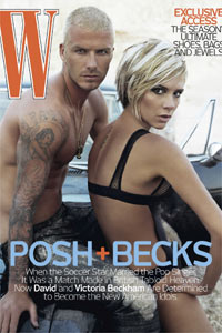 《联合早报》报道,贝克汉姆在《W》杂志内大秀肌肉及文身,身上只有一条内裤的他,躺在床上以臀部对着读者,极尽挑逗。而穿着性感的维多利亚则劈开大腿,呆若木鸡地坐在椅上。