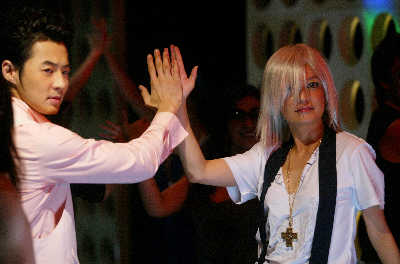 昨天,韩国组合神话的成员JUNJIN出现在上海的MUSE酒吧,拍摄赵薇的MV《恰恰爱》。在MV中,赵薇颠覆了往日形象,以白发造型登场,扮演穿梭于酒吧中的摩登女郎。而制作人李泉也在现场全程监制,他介绍说:“这是要展示赵薇不为人知的一面。”因为在MV中要跳舞,赵薇在现场还不断虚心地向有着神话舞王之称的JUNJIN取经。