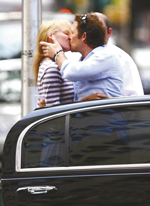 近日,女明星乌玛·瑟曼新恋情曝光,其新欢为超模艾丽·麦菲逊前男友亿万富豪布森。当天,两人毫不避忌地在纽约大街上激情拥吻。乌玛·瑟曼是在大导演昆汀·塔伦蒂诺的多部电影中被大家熟知,她孩童般纯洁的面孔,带有致命诱惑的眼神倾倒了无数男性。(欣朗)