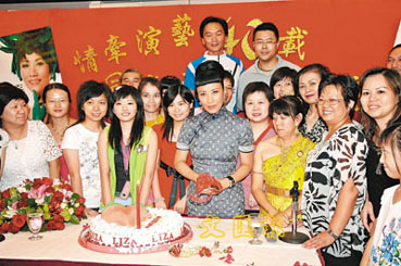 中新网8月20日电 “明荃之友”昨日在新世界万珑酒店为汪明荃举行生日会,兼庆祝Lisa姐入行40周年。汪明荃穿上用LV丝巾改造而成的旗袍,接受一众fans的道贺及贺礼,可惜她工作事忙,匆匆来匆匆去,叫一众fans未能尽兴。