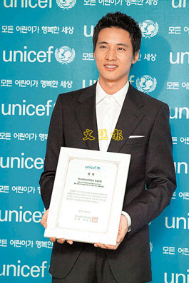 中新网9月7日电 据香港文汇报报道,韩国型男元彬自去年退伍后,便忙于进行物理治疗,鲜有露面。昨日他为了联合国的慈善活动,长达1年多后首度现身,出席首尔联合国儿童基金会(UNICEF)韩国委员会办公室的世界儿童族群服务的联合国儿童基金会艺术领域特别代表的任命仪式,并获颁任命状。