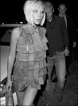 上周末,辣妹携手老公贝克汉姆亮相好莱坞明星云集的马里布海岸,其衣装品位再度成了焦点。媒体称辣妹这件别具匠心的裙子其设计灵感取源于“忍者神龟”家族。有当晚目击者这样描述:“维多利亚就像是被装在了一个十分可体的盔甲里。我觉得如果给维多利亚配上一把拿在手里的武器,她完全就是忍者神龟动画片里面的第5号人物。特别是那种绿色,简直如出一辙。唯一让辣妹看起来和忍者神龟有区别的应该就是她脸上浓重的彩妆。”