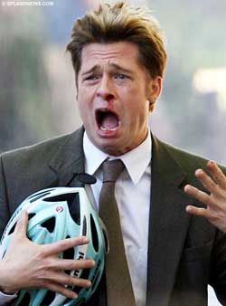 近日,在新片《阅后焚烧》位于纽约的拍摄现场,男一号扮演者、好莱坞英俊小生布拉德•皮特正在拍摄一场骑自行车从山坡上冲下来撞到汽车的戏。穿着西装、戴着单车帽骑自行车的皮特不仅完全颠覆了以往酷帅有型的形象,还灰头土脸地流着鼻血,令人大跌眼镜。