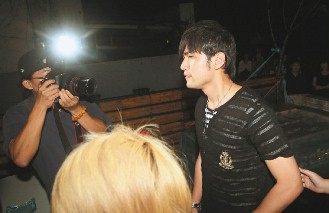 据台湾联合报报道,周杰伦大约午夜12时抵达,大方与前绯闻女友温岚同桌,但他都以水代酒,凌晨一点半离开时,门口依然挤满摄影与狗仔,周董寸步难行,不得不以手阻挡贴得太近的镜头,一阵混乱中,助理的头部被摄影机打到,但对方不道歉就离去,生气的周杰伦立即跳上借来的跑车,飞车追逐了一段路,要为助理“找个道歉”,但最后并未追上。