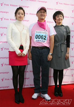 中新网10月15日电 据体育朝鲜报道,韩国“2007粉红丝带爱心马拉松大赛”于14日在首尔世界杯公园附近举行,众韩流明星的加盟,使得大赛盛况空前。担任宣传大使的人气演员赵寅成、金泰熙和文根英也登上舞台,为参赛者打气助威。