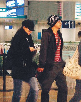 28日,记者参加完第十六届金鸡百花电影节后抵上海乘机返回北京,下飞机时,发现袁泉经纪人正在头等舱收拾行李,礼貌的打过招呼后,记者猛地发现身后不到5米的地方竟然站着袁泉和夏雨。两人都戴着黑墨镜,穿着黑色大衣,头上的黑帽子压得很低,十指交叉低着头。随后,两人穿过人群,手牵手径直走到行李托运处。当记者连拍照片时,他们一同回头看记者,一脸吃惊的样子,只听袁泉说道:“这里还有记者啊?”随后袁泉经纪人马上过来阻拦,禁止拍照。