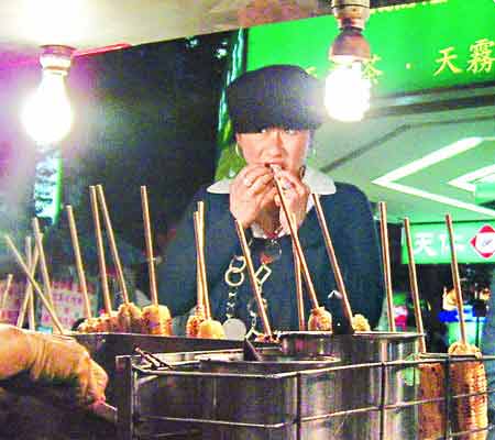 稍晚她回饭店休息片刻,果然大开“食戒”,先和工作人员去双城街吃意大利菜,又意犹未尽直奔林森北路逛夜市,试吃路边摊的水煮花生时,还大喊“好好吃喔”!