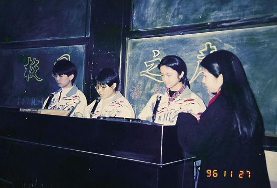 汤唯是班长,又是语文课代表,艺术天赋很早就表现出来了。1996年11月27日,汤唯与另外两名同学代表学校参加校园之声职高学生播音比赛,还获了奖。“她很喜欢各种文艺方面的活动,每次的主题班会都是汤唯与副班长一起主持策划的。”说到这班主任肖老师很开心,“只要有她在,我什么都不用操心,只要坐在底下听就好。她是个很用功的学生。汤唯普通话说得很好,学校的活动很多都是她主持的。”