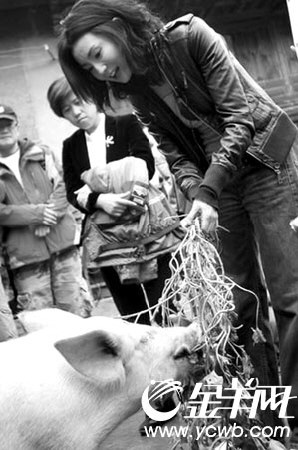 日前,张曼玉到云南省会泽县参加“童梦圆”活动,在农户家喂过一头猪。后来有网友恶搞说当地县委书记最近发出指示说,要切实保护张曼玉喂过的猪,在网上掀起剧烈评论。对此,会泽县有关部门称,网上传言纯粹是胡编乱造,而张曼玉喂过的猪将在年底被宰。