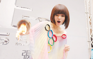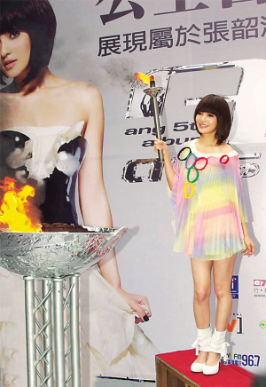 张韶涵将于12月14日推出第五张大碟《ANG 5.0》,前日,福茂唱片斥资12.5万人民币为她的签唱会打造“移动式竞技场”舞台,让签唱会走到哪里,竞技场舞台就原封不动地移动到哪。当日,张韶涵身穿象征“奥运运动家精神”的露肩五彩透明薄纱春装“彩虹运动装”现身,还从舞者手上拿起圣火火炬,点燃象征出征必胜的圣火塔。
