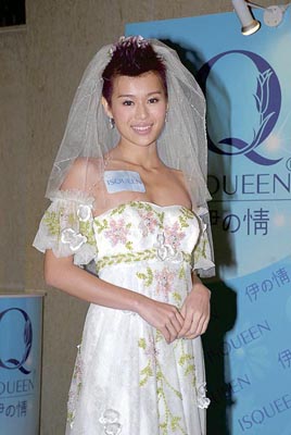 中新网12月12日电 胡杏儿昨日披上婚纱扮新娘,出席日本美容品牌ISQUEEN活动,并宣布与徐子珊一起担任品牌代言人。胡杏儿以7位数字酬劳与品牌签约两年,但她否认取代已为品牌代言3年的徐子珊,并解释只是各有各做。