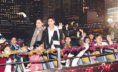中新网12月17日电 爱心爆棚的Twins前晚专程抽空和一群小朋友坐敞篷公交车,夜游闹市预祝圣诞节。今年蔡卓妍(阿Sa)和钟欣桐(阿娇)将在工作中过节,阿Sa希望有机会到泰国穿泳衣过一个热辣辣的圣诞!