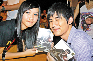 “仔仔”周渝民,上周日在马来西亚举行签唱会时,表现亲民。不仅情深款款地跟歌迷说:“我爱你们。”献唱《爱上这世界》时,一度忘记歌词的他又以可爱笑容挽救,到了与女歌迷合影时,还主动眯眼装可爱,这么识做,难怪3年没去当地宣传都依然保持高人气。