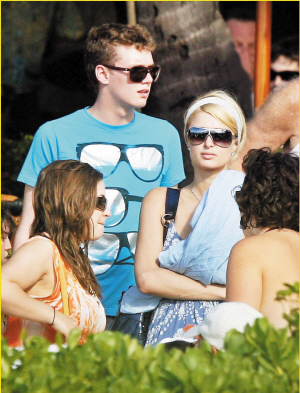 帕里斯24岁的妹妹尼基和13岁的弟弟康拉德在夏威夷的海边嬉戏。