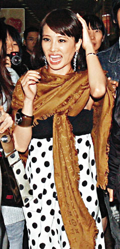 而Jolin在领奖时穿上紫色吊带束腰裙热舞,引发全场尖叫声不绝,疯狂粉丝早在外头等候,但她离开庆功宴时,突然被热情粉丝用手打到头,Joiln只好抱着头匆忙离去。