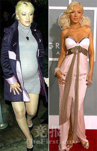 流行歌手克里斯蒂娜挺大肚脚蹬高跟鞋出门(图)