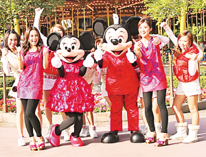 Twins日前百忙中抽空为迪斯尼乐园拍摄贺岁歌《送猪型鼠》MV,她们穿上由Vivienne Tam以米奇老鼠为主题的靓衫,和米奇及米妮以及其它卡通人物一同拍摄,场面相当热闹,充满过年气氛。阿Sa称很开心能和米奇这位世界知名人物拍MV,阿娇更发表“我爱米奇宣言”,童心未泯。
