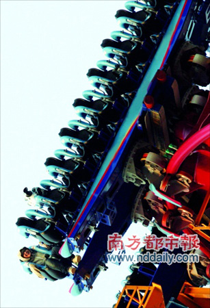 昨天下午,湖南卫视最新一期《勇往直前》节目在广州长隆欢乐世界录影,这期参加节目的嘉宾是刚刚出了新专辑的周笔畅,她坐了两次垂直过山车后,直呼痛快。