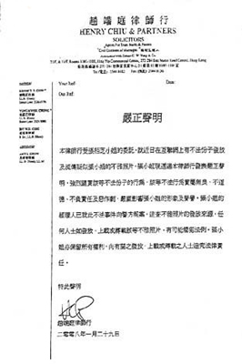 张柏芝发表声明证清白。