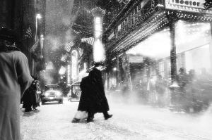 《梅兰芳》上周刚通过人工造雪拍完了“纽约雪景”的戏份(上图),偏偏这时自然雪景降临。