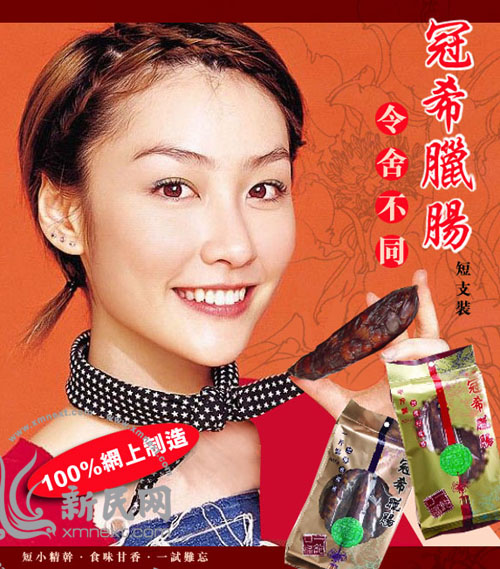 在香港某论坛有网友PS了两张贺年食品的广告图,广告上的主角分别为“艳照门”事件中涉及的艺人陈冠希和陈文媛。其中一则广告上竟称该贺年食品为“送礼极品”。