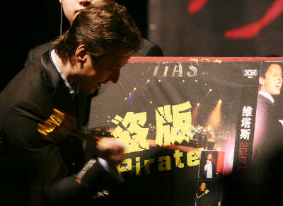 主办方为感谢Vitas为正版音乐做出的贡献,在记者会上特别授予他“反盗版荣誉大使”称号。Vitas拿起金色榔头奋力杂碎了数张关于他的盗版专辑,还兴奋地告诉记者:“我要把这个小榔头带到世界各地去,相信盗版商们都会感到害怕。”今晚,Vitas将在上海大舞台举行演唱会。其经纪人谢尔盖·普多夫金透露,此次演唱会上,Vitas将使出“绝招”来讨好上海歌迷,此外,Vitas还会在女歌迷中选出一名幸运者,邀请她上台一起合唱。