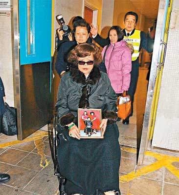 二月十九日,香港艺人沈殿霞在香港玛丽医院病逝,终年六十一岁。沈殿霞的女儿郑欣宜在医院办理手續時,被记者包围,引起混乱,期间她未有发言。中新社发 邓庆乐 摄