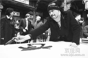 昨天,墨海飘香——群星迎春笔会在坦博艺苑举办,多位影视明星、书画界元老共同参与,挥笔泼墨,其中包括著名歌唱家胡松华、李双江、戴玉强等。值得一提的是,很少参加内地书画活动的香港艺人也来到现场,香港影视明星徐锦江挥毫泼墨,给媒体留下深刻印象。原来,这位演过“鲁智深”、“鳌拜”的港星,并不是一位粗人,徐锦江毕业于广州美术学院,是中国南派著名画家关山月的弟子。在香港演艺圈,外表豪放的徐锦江书画艺术水平,无人能出其右。