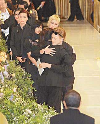 欣宜与外籍男友肥姐追思会上相拥 泪如雨下(图)