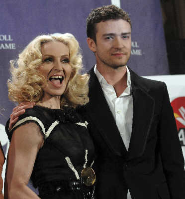 贾斯汀“下跪”为流行乐“女王”麦当娜颁奖