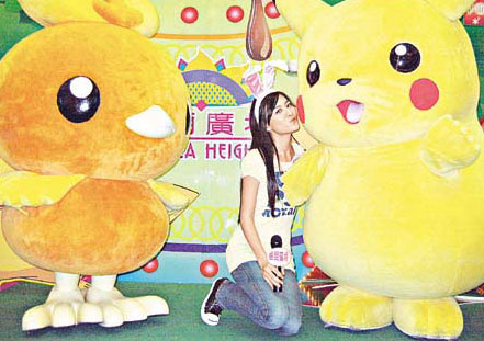江若琳和儿时卡通偶像“比卡超”合照,童心未泯。香港东方日报图。