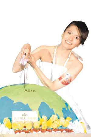 梁咏琪昨日在签约时以切割地球展露自己冲出亚洲的野心。