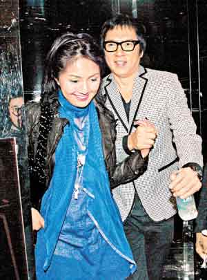 杨千嬅离开时显带醉意,由新郎哥单立文体贴地扶离开。