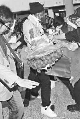 当天李准基一出机场就引发现场骚乱,虽有10名保安人员将李准基围住,却依然抵挡不了粉丝们的热情。混乱中,李准基左脚的白色球鞋被歌迷踩掉,礼物也散落了一地,现场一时很尴尬。