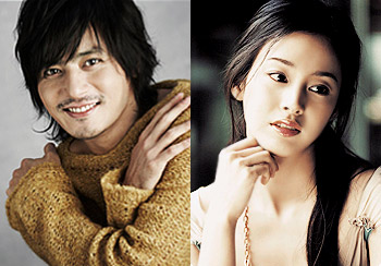 张东健(左)和金泰熙当选为韩国2008年上半年最受欢迎的男女演员。