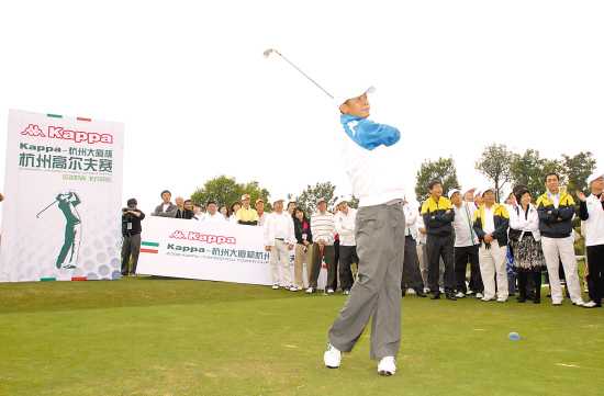 12点40分,开球仪式开始。王志文在掌声中健步走向开球区,开始了一场个人秀:站在球前,手持球杆,晃了晃身子,然后是“嗖”的一声出手,眼睛望向远方,那姿势是相当标准。所有人的目光都随着他看过去,正找球呢,突然有人喊:“咳,没打出去!”那球还留在原地。摆谱的王志文一连虚打了两次,才把球击出,给人的感觉特别有范儿。王志文的球童告诉记者,王志文练球时使用金属杆能击出250码,而且击球很稳,可以看得出他是个老球手了。