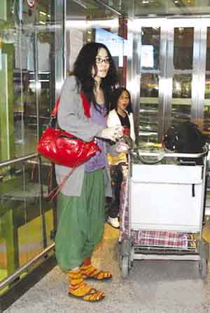 王菲日前携大女儿童童现身机场。