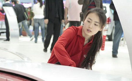 2008北京车展4月23日刚刚落幕,“最美清洁工”迅速走红网络。这位躲在车展角落毫不起眼的清洁工美女,在有心人士的偷拍下,她清秀的素颜照让众多浓妆艳抹的车模黯然失色。照片一经放到网上就引来网友热捧。不过,近日此女真实身份曝光,清秀瘦弱的清洁工美女原是北京现代音乐研修学院管理专业的大学生,真名于洋,还在暑期大片《赤壁》里扮演宫女。一个艺术学院的学生为什么还要跑到车展当清洁工?随着于洋真实身份的一步步曝光,这位新晋网络红人遭来越来越多的质疑:不仅被指出于洋背后有网络推手的高明炒作,甚至昨日也有网友专门撰写评论,炮轰这是《赤壁》制片公司的炒作。