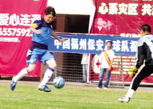 昨日下午,由孙楠、黄健翔、常宽、黄征等诸多文体明星组成的梦舟明星足球队在省体育中心与中国人寿福建代表队进行了一场主题为“携手人道·抗震救灾”公益比赛,在现场队长孙楠代表明星足球队为四川灾区捐赠了价值100万元的款物。昨日同时也进行了省红十字会十大爱心公益企业和个人表彰活动。最终双方以1:1的结果握手言和。在球赛间隙明星们也接受了记者采访,说起了自己的赈灾感想。