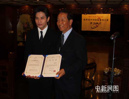 副会李晓林表示:很荣幸邀请到韩国著名歌星, “全民舞王”—— 刘承俊先生担当“2008年国际宣传大使”。在宣读了“2008国际宣传大使”职责和义务后,邀请刘承俊先生共同签署委任书。李晓林还说:第二届世界“洗手间”协会总体大会将于明年在我国召开。计划成陆续向中国农村广大乡村、城镇等地区,投入具有世界级标准的洗手间设施和文化保洁用品。