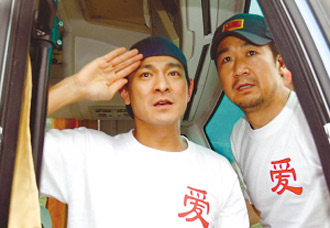 昨日中午12:50,刘德华、郑秀文、容祖儿等一行飞抵成都双流机场。稍后,张国立、冯小刚、陈道明等人陆续抵达。下午3点半左右,他们从成都出发,赶赴离都江堰市20公里的向峨乡。