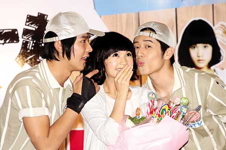 在新剧中饰演“宅女”的杨丞琳表示,她是首次饰演这样内敛的角色,也是一种挑战。剧中,她将与饰演偶像明星的汪东城以及饰演青梅竹马好友的胡宇崴有一段错综复杂的三角恋情。问到杨丞琳对两个男生有什么印象,无厘头的她竟回答:“我觉得他们一直在对我用力。”她透露,第一次见到大东时,她主动找他攀谈,他却一脸酷样不理人。对此没印象的大东连忙澄清:“可能是我在团里被要求耍酷,不能讲话吧。”大东说他妈妈很欣赏杨丞琳:“我跟她同样都是一出道就要帮家里背债,她已还完债并买了新房子,现在我的房贷也快还清了,正在找新房子。”杨丞琳听完马上说:“我家那边还有空屋,欢迎来当我的邻居。”