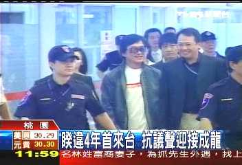 中新网6月18日电 睽违四年之久,国际巨星成龙再次踏上宝岛台湾的土地。他于今天上午十点五十五分左右抵达桃源机场展开两天的活动行程,据悉,他今日将在台北一零一大楼的八十四楼开记者会。